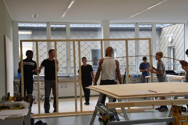 Mit großem Engagement und tatkräftiger Unterstützung mehrerer regionaler Firmen setzten Schüler:innen und Lehrpersonen das Projekt gemeinsam um. Schon in der Planungsphase, die von Architekt Gebhard Natter begleitet wurde, durften die Schüler:innen in Gruppen eigene Ideen entwickeln und ihre Vorstellungen eines idealen Kunstraums präsentieren. Dabei stand die Frage im Mittelpunkt: Was brauchen wir, um kreativ zu sein? und Wo fühlen wir uns wohl?